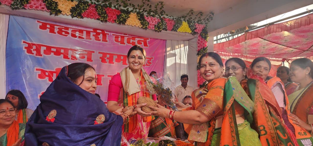 भावना बोहरा ने आगे कहा कि आज जब मैं महतारी वंदन योजना सम्मान समारोह में योजना से लाभान्वित माताओं-बहनों से संवाद किया तो उनके अन्दर एक अलग ही उत्साह देखने को मिल रहा है। उनका यह उत्साह ही भाजपा और मोदी जी की गांरटी के प्रति विश्वास है। हमें पूर्ण विश्वास है की प्रदेश की माताओं-बहनों के आशीर्वाद से हम लोकसभा चुनाव में छत्तीसगढ़ की सभी 11 सीटों में प्रचंड जीत हासिल करेंगे और अबकी बार 400 पार के लक्ष्य को सार्थक करेंगे। आज केंद्र की योजनाओं से छत्तीसगढ़ में निरंतर विकास हो रहा है। पांच वर्षों के कांग्रेस के कुशासन से त्रस्त प्रदेश की जनता ने अपने जनाधार से पुनः छत्तीसगढ़ में सुशासन का सूर्योदय किया और प्रधानमंत्री नरेंद्र मोदी जी के कुशल मार्गदर्शन तथा मुख्यमंत्री विष्णु देव साय जी के नेतृत्व में प्रदेश में डबल इंजन की सरकार बनाई। नल जल योजना के माध्यम से आज प्रदेश के लाखों घरों में स्वच्छ जल पहुंचा है, 18 लाख नए आवास की स्वीकृति भाजपा सरकार ने दी जिसे कांग्रेस ने रोक के रखा था।