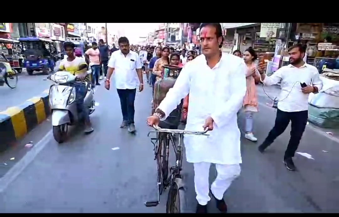 गांधी मैदान कोतवाली चौक जयस्तंभ चौक शारदा चौक तत्यापारा सदर बाजार होते हुए पैदल चलकर वरिष्ठ नेताओं के साथ वोट अपील की