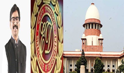 नयी दिल्ली । (सियासत दर्पण न्यूज़) उच्चतम न्यायालय ने झारखंड में कथित भूमि घोटाले से संबंधित धन शोधन के एक मामले में तीन माह से अधिक समय से न्यायिक हिरासत में जेल में बंद पूर्व मुख्यमंत्री हेमंत सोरेन की उच्च न्यायालय के तीन मई के आदेश को चुनौती देने वाली याचिका पर सोमवार को प्रवर्तन निदेशालय (ईडी) को नोटिस जारी कर जवाब-तलब किया। न्यायमूर्ति संजीव खन्ना और न्यायमूर्ति दिपांकर दत्ता की पीठ ने श्री सोरेन का पक्ष रख रहे वरिष्ठ अधिवक्ता कपिल सिब्बल की ओर से बार-बार शीघ्र सुनवाई का अनुरोध किये जाने पर ईडी को नोटिस जारी किया और मामले को 17 मई को सूचीबद्ध करने का निर्देश दिया। पीठ इस मामले को गर्मी की छुट्टियों के दौरान या जुलाई में विचार के लिए सूचीबद्ध करना चाहती थी, लेकिन श्री सिब्बल ने सुनवाई के लिए शीघ्र सूचीबद्ध करने का अनुरोध किया।