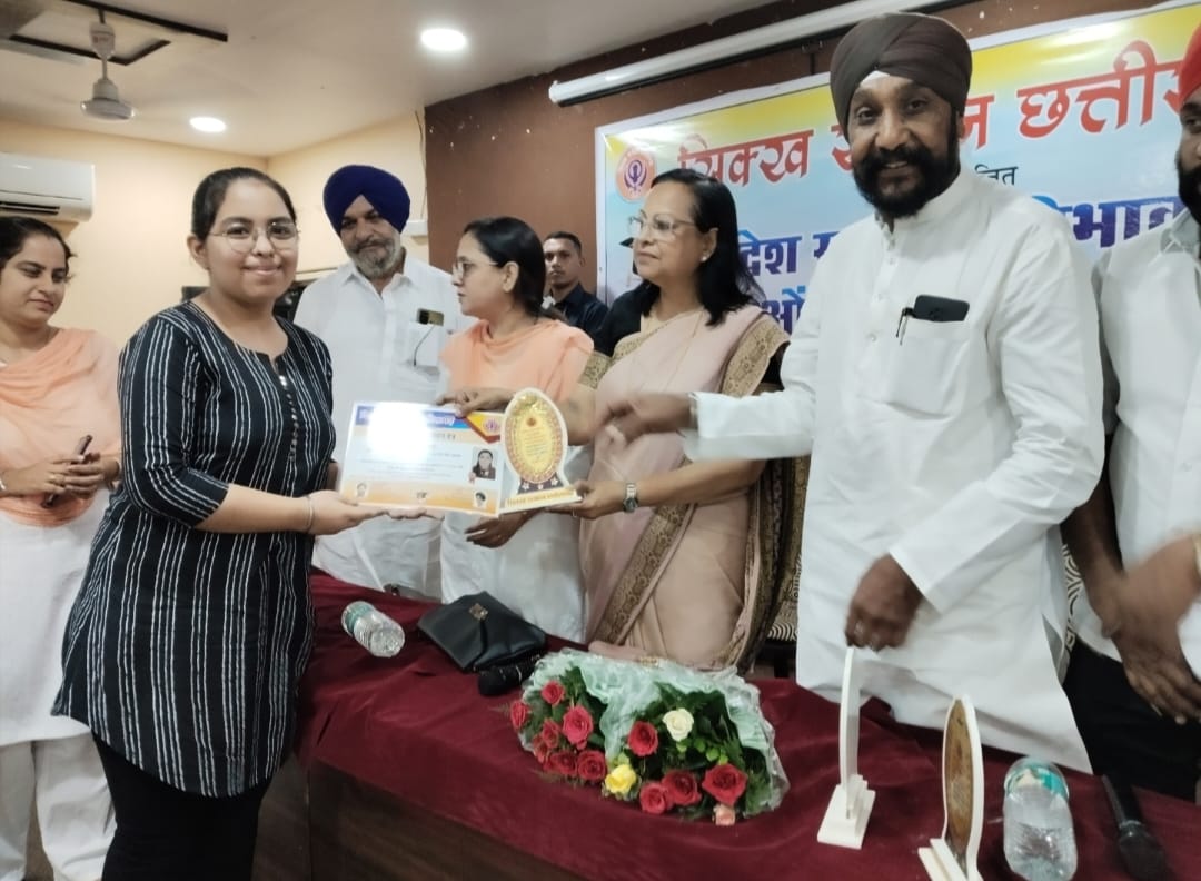 रायपुर, सियासत दर्पण न्यूज़,,सिक्ख समाज छत्तीसगढ़ ने आज मायाराम सूरजन सभाग्रह मै समाज के 215 प्रतिभावन छात्र छात्राओं का सम्मान किया जो छात्र 9वी 10वी 11वी व 12वी मै 80प्रतिशत से अधिक अंक प्राप्त किये थे उनका सम्मान हेमचंद विश्वविद्यालय की कुलपति डॉ अरुणा पल्टा के मुख्य आतिथ्य और सिक्ख पंचायत दुर्ग के अध्यक्ष जसबीर सिंह चहल एवं जवाहर खन्ना के विशेष आतिथ्य मै संम्पन हुवा. जिसमे अंबिकापुर मनेद्रगढ़ कोरबा बिलासपुर कवर्धा बेमेतरा डोंगरगढ़ राजनांदगाव दल्लीराजहरा जगदलपुर सराईपाली बसना पिथौरा महासमुंद सहित पुरे प्रदेश के विद्यार्थियों को मोमेंटो तथा प्रशस्ति पत्र देकर सम्मानित किया गया