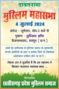 4 जुलाई को सम्पूर्ण छत्तीसगढ़ के मुस्लिम समाज की रायपुर में होने जा रही है महासभा
