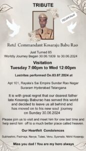 वार्ब की मिटींग में पधारे पूर्व एडीजी श्री एचआर सिंह द्वारा पूर्व कमांडेंट के.बाबूराव के 30 जून को गाड़ी एक्सीडेंट के दौरान अचानक मौत होने पर 2 मिनट का मौन रख दिवंगत आत्मा को भावभीनी श्रद्धांजलि अर्पित की गई। साथ ही उपस्थित सभी सीएपीएफ के सदस्यों को श्री कोसा बाबू राव जी के बल में खेलों के विकास में विशेष कर कबड्डी टीम के कोच के रूप में, सीआरपीएफ पब्लिक स्कूल रंगा रेड्डी के लिए 10 लाख रूपए के आर्थिक योगदान के बारे में बताया।