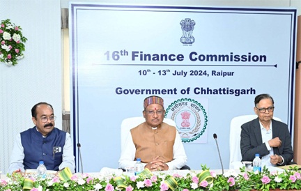 रायपुर ।(सियासत दर्पण न्यूज़) केंद्रीय वित्त आयोग की बैठक आरंभ, मुख्यमंत्री श्री विष्णु देव साय एवं मंत्रिमण्डल के सहयोगी तथा आयोग के अध्यक्ष डॉ. अरविंद पनगढ़िया सहित आयोग के सदस्य तथा अधिकारीगण बैठक में हैं मौजूद। वित्त मंत्री श्री ओ.पी. चौधरी ने राज्य की वित्तीय स्थिति एवं राज्य की आवश्यकताओं के संबंध में आयोग के समक्ष रखी अपनी बात।