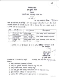 रायपुर।(सियासत दर्पण न्यूज़) डा.लाल उम्मेद सिंह पुलिस अधीक्षक बलरापुर रामानुजगंज से पुलिस अधीक्षक मुख्यमंत्री सुरक्षा,राजेश अग्रवाल -सेनानी 11 वीं वाहिनी छस बल जांजगीर चांपा से पुलिस अधीक्षक बलरापुर रामानुजगंज व प्रफुल्ल ठाकुर-पुलिस अधीक्षक मुख्यमंत्री सुरक्षा को सेनानी 4 थी वाहिनी छस बल माना कैम्प पदस्थ किया गया है। उक्त आदेश आज शाम गृह(पुलिस) विभाग से जारी हुआ है।