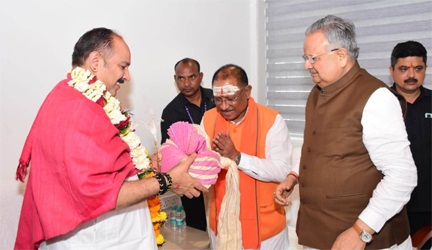 रायपुर । (सियासत दर्पण न्यूज़) मुख्यमंत्री श्री विष्णु देव साय ने आज राजनांदगांव के क्लब हाऊस सन सिटी में प्रसिद्ध कथावाचक पंडित श्री प्रदीप मिश्रा से सौजन्य मुलाकात की। मुख्यमंत्री श्री विष्णु देव साय एवं विधानसभा अध्यक्ष डॉ. रमन सिंह ने उन्हें शाल-श्रीफल प्रदान कर सम्मानित किया तथा स्मृति चिन्ह के रूप में बेलमेटल की नंदी की मूर्ति भेंट की। मुख्यमंत्री ने कहा कि पावन श्रावण मास चल रहा है, इस दौरान आपसे मुलाकात करने का मुझे सौभाग्य प्राप्त हुआ। मुख्यमंत्री श्री साय और विधानसभा अध्यक्ष डॉ. सिंह ने पूजा-अर्चना की और पंडित श्री प्रदीप मिश्रा से आशीर्वाद ग्रहण किया। इस अवसर पर पूर्व सांसद श्री मधुसूदन यादव, राजनांदगांव के कलेक्टर श्री संजय अग्रवाल, पुलिस अधीक्षक श्री मोहित गर्ग सहित अनेक जनप्रतिनिधि उपस्थित थे।