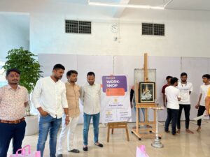 छत्तीसगढ़ प्रदेश साहू संघ,युवा प्रकोष्ठ एवं विनायकम वेलफेयर सोसायटी के संयुक्त तत्वाधान में आयोजित इस कार्यशाला में अंतराष्ट्रीय रंगोली कलाकार प्रमोद साहू दे रहे हैं प्रशिक्षण