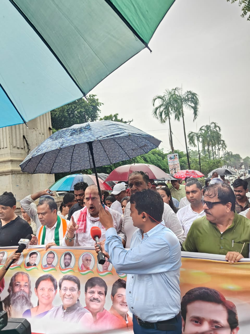 गौमाता के सम्मान में गौमाता की रक्षा के लिए कांग्रेस पार्टी के नेता और कार्यकर्ता बरसते पानी में भी सतायाग्रह किए