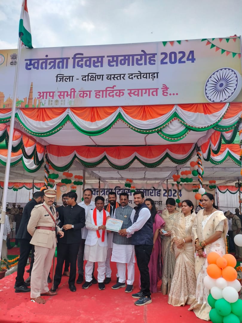 शिक्षा के क्षेत्र में उत्कृष्ट कार्य करने हेतु उत्कृष्ट संकुल समन्वयक पुरस्कार से योगेश सोनी संकुल समन्वयक गीदम को जिला प्रशासन दक्षिण बस्तर दंतेवाड़ा एवं स्कूल शिक्षा विभाग दंतेवाड़ा द्वारा 78वी भारत स्वतंत्रता दिवस के अवसर पर 15 अगस्त 2024 को सम्मानित किया गया। स्वतंत्रता दिवस समारोह के तहत आयोजित सांस्कृतिक कार्यक्रम नृत्य में