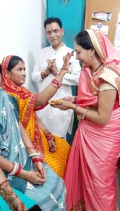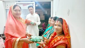 हरतालिका तीज महोत्सव में व्रती महिलाओं का भाई, बेटा बनकर तीज की साड़ी एवं सुहागन का दिया गया समान