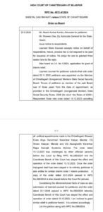 रायपुर/सियासत दर्पण न्यूज़/ छत्तीसगढ़ में बीजेपी की सरकार आने से बीजेपी ने ,निगम मंडल,आयोग मंडल,समिति आदि के कलेक्टेड के आदेश पर निरस्त कर दिए गए थे।छत्तीसगढ़ सामाजिक काम कर्मकार सामाजिक सुरक्षा मंडल के सदस्य सोमेन चटर्जी ने बताया कि हम सब सदस्यों ने इस आदेश के खिलाफ हाई कोर्ट में स्टे लगाए थे जिसमें आज सुनवाई के बाद कोर्ट से हमे छत्तीसगढ़ सामाजिक काम कर्मकार समाजिक सुरक्षा मंडल को यथावत रखने का आदेश आज पारित हो गया