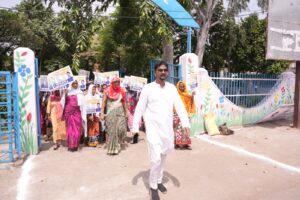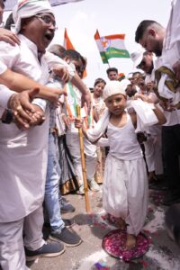 स्वागत में सबसे पहले मिनी माता जी व महात्मा गांधी जी की प्रतिमा में माल्यार्पण किया गया । और उसके बाद प्रदेश भर में ऐसे बढ़ते अपराधो को देखते हुए बंटी होरा ने महिलाओं को स्वय की सुरक्षा के लिए लाठियों का वितरण श्री दीपक बैज जी के हाथों से करवाया और कहा आज गांधी जयंती है और हम भी अहिंसा के राह में चलने वाले लोग है पर आज प्रदेश में अपराधों को देखते हुए महिलाओं को उनकी स्वयं की सुरक्षा के लिए लाठियों का वितरण किया जा रहा है । छत्तीसगढ़ की जनता की सुरक्षा और उनके हक के लिये सफल आंदोलन करते हुऐ 125 किलोमीटर से पैदल चल कर आने वाले हमारे प्रदेश अध्यक्ष दीपक बैज जी ने गांधी जी बने बालक को 11 कदम थाल में गुलाब जल से स्वागत किया और पदयात्रियों के ऊपर पुष्प वर्षा की गई,,साथ मे सभी पद यात्रियों को बंटी होरा के तरफ से शरबत वितरण किया । न्याय यात्रा का स्वागत बेहद जोश से भरा और गरिमामयी हुआ ।
