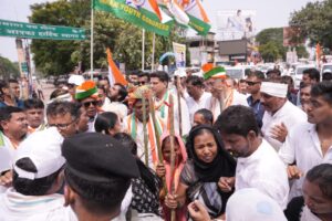 रायपुर मिनी माता परिसर में जब पहुंची तब दृश्य बेहद जोशीला दिखा ज़ोन क्रमांक 2 के अध्यक्ष बंटी होरा व पार्षद कामरान अंसारी के नेतृत्व में युवा साथियों और वार्ड की महिलाओं ने न्याय यात्रा का जोशीला स्वागत किया,