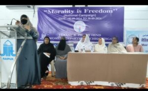 रायपुर, सियासत दर्पण न्यूज़“नैतिकता ही स्वतंत्रता का आधार है” जमाअत ए इस्लामी हिंद महिला विंग द्वारा 1 से 30 सितंबर तक चलाई गई इस राष्ट्रीयव्यपी मुहिम का आज आखिरी चरण छत्तीसगढ़ राज्य में संपन्न हुआ। इस विषय पर छत्तीसगढ़ के ज़िम्मेदार नागरिकों में खूब चर्चा का विषय रही और लोगों ने इस अभियान का गर्मजोशी से स्वागत किया।