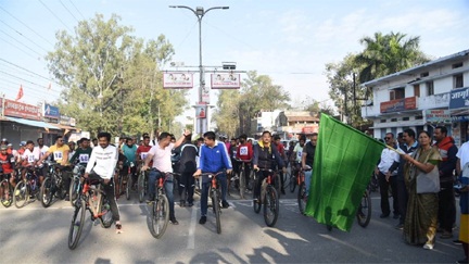 अंबिकापुर। (सियासत दर्पण न्यूज़) मैनपाट महोत्सव 2024 का शुभारंभ साइकिल रेस के साथ कर दिया गया है। गुरुवार को महापौर डा अजय तिर्की, जिला पंचायत अध्यक्ष मधु सिंह, कलेक्टर भोस्कर विलास,पुलिस अधीक्षक विजय अग्रवाल ने साइकिल रेस का शुभारंभ किया।कलेक्टर ने कलेक्टर ने युवाओं को स्वस्थ रहने का संदेश दिया। पुलिस अधीक्षक ने बताया कि मैनपाट महोत्सव में 450 से अधिक पुलिस अधिकारी – कर्मचारियों को ड्यूटी पर लगाया गया है। उन्होंने प्रतिभागियों को शुभकामनाएं दी। मालूम हो कि जिला प्रशासन सरगुजा द्वारा मैनपाट महोत्सव 2024 के अवसर पर विगत वर्षों की भाँति इस वर्ष भी पुरुष एवं महिला साइकिल रेस का आयोजन किया जा रहा है जिसमें 200 से ज्यादा प्रतिभागियों ने पंजीयन कराया है। राज्य के अलग अलग जिलों से शामिल होने वाले प्रतिभागियों में 157 पुरुष एवं 44 महिलाएं शामिल हैं।प्रतियोगिता की शुरुआत घड़ी चौक अम्बिकापुर से हुई। 30 किमी साइक्लिंग के बाद नवापाराकलां में समाप्त होगी। गौरतलब है कि साइकिल रेस के विजेता महिला एवं पुरूष प्रतिभागियों को जिला प्रशासन सरगुजा की ओर से नकद पुरस्कार प्रदान किया जाएगा। प्रथम स्थान प्राप्त महिला और पुरूष खिलाड़ी को पृथक -पृथक क्रमशः 21,000 रुपये, द्वितीय स्थान प्राप्त महिला और पुरूष खिलाड़ी को 11,000 रुपये एवं तृतीय स्थान प्राप्त महिला और पुरूष खिलाड़ी को 5,100 रूपये का पृथक-पृथक नकद पुरस्कार प्रदान किया जाएगा एवं दसवें स्थान तक आने वाले खिलाड़ियों को भी सांत्वना पुरूस्कार प्रदान किया जायेगा।