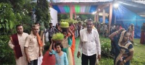 कवर्धा ।(सियासत दर्पण न्यूज़) हर वर्ष की भाती इस साल भी कवर्धा राजमहल में भोजली महोत्सव परम्परागत व बड़े धूम धाम से मनाया गया जिले भर तथा आस पास के ग्रामों से आए महिलाओं तथा स्थानीय महिला मानस मंडली के महिलाओं के बीच कवर्धा रियासत के महारानी व त्रिपुरा के सांसद रानी कृतिदेवी सिंह ने सोलहवीं सिंगार कर विराजमान थी जहां स्थानीय कलाकारों के द्वारा सुमधुर भजनों का कार्यक्रम के बीच भोजली महोत्सव मनाया गया सभा को संबोधन के बाद शहर के घरों से व राजमहल में बोए गए भोजली का महारानी कृतिदेवी ने विधि विधान से पूजा अचना कर अच्छी बारिश व प्रदेश की खुशहाली की कामना करते हुए आरती उतारी ,इसी बीच स्थानीय पंडितों द्वारा वैदिक मंत्रों का उच्चारण करते हुए शंकानंद किया गया पश्चात जुलूस के साथ भोजली को विसर्जित करने ले जाया गया। रक्षाबंधन के दूसरे दिन भाद्र कृष्ण पक्ष की पहली तिथि को आयोजित होने वाले इस पर्व को लेकर इस बार उत्साह रहा। महिलाएं और बच्चे अपने सिर पर भोजली की टोकरी लेकर विसर्जन के लिए भोजली तालाब पर पहुंची। नागपंचमी के दिन चुरकी, टुकनी में मिट्टी लाकर उसमें गेहूं को भिगाकर भोजली बोने के बाद दस दिनों तक ग्राम देवता की आराधना के साथ पानी सींचते हुए अपनी भोजली का खूब जतन किया गया। फिर विधि-विधान से पूजा-अर्चना कर भोजली का विसर्जन किया गया।