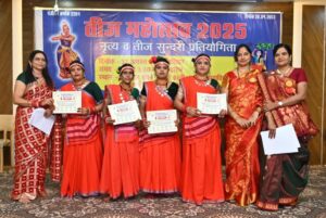 प्रदेश अध्यक्ष अरविन्द ओझा एवं महिला अध्यक्ष नमिता शर्मा ने बताया की इस नृत्य एवं तीज सुन्दरी प्रतियोगिता में रायपुर, बिलासपुर, भाटापारा, बलौदाबाजार, बेमेतरा, दुर्ग जिले से लगभग 70 प्रतिभागियों ने भाग लिया. नृत्य प्रतियोगिता के परिणाम निम्नानुसार रहे- एकल नृत्य में प्रथम – स्वीटी शर्मा, द्वितीय- अल्पना शर्मा, युगल नृत्य में प्रथम – सुरभी शर्मा, मनका त्रिपाठी, द्वितीय – सीमा चोपड़ा, रावी चोपड़ा एवं समूह नृत्य में प्रथम – महिषासुर मर्दनी ग्रुप, द्वितीय स्थान – निधि दीवान ग्रुप रहे. तीज सुन्दरी प्रतियोगिता में श्रीमती उन्नति शुक्ला विजेता रही.