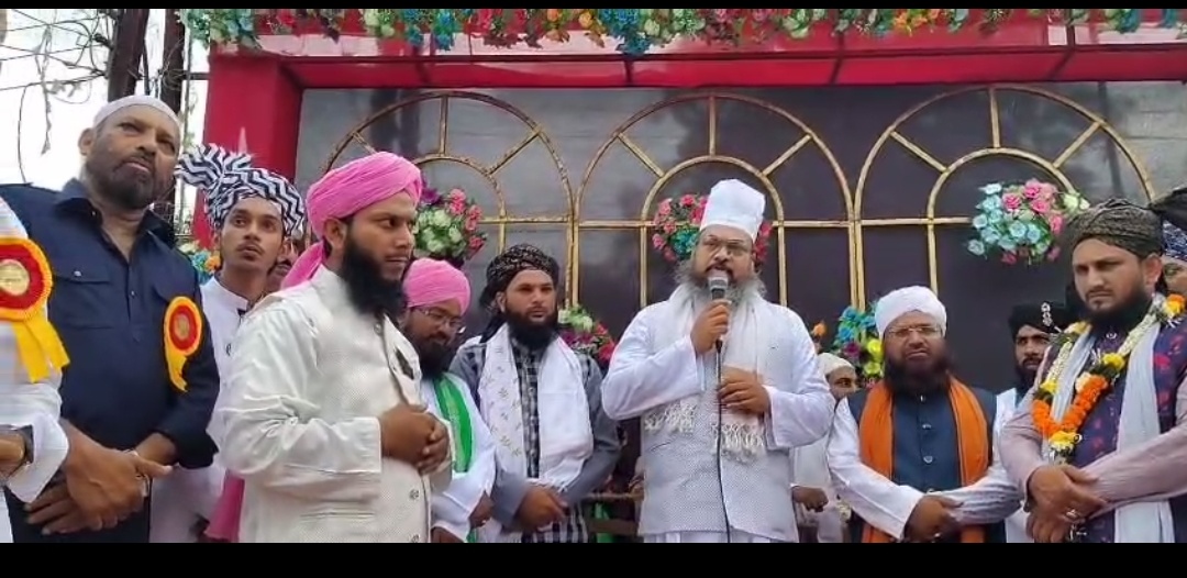 दुर्ग,,सियासत दर्पण न्यूज़,,1500 जश्ने आमदे रसूल ﷺ कि जुलूसे मोहम्मदी ﷺ मे जुलुस कि कयादत औलादे गौसे आज़म शहजादए सिमना हज़रत अल्लामा अश्शाह सैय्यद अहमद अशरफ अशरफ़ी उल जिलानी साहब खलीफ़ा ए हुज़ूर सरकार ए कलां किछोछा मुकद्दासा व मौलाना मोइनुद्दीन अशरफी दुर्ग,जेरे एहतमाम सीरत पाक कमेटी जामा मस्जिद शहर दुर्ग की जानिब से किया गया जुलूस-ऐ-मोहम्मदी दुर्ग शहर के अनेकों वार्ड से गुजरा जगह जगह जुलुस का इस्तकबाल हुआ,