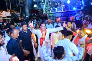 झाँकियों में स्वयं बैण्ड बजाकर एवं नृत्य कर समूहों का उत्साह वर्धन किया