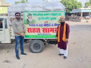 इतिहास में पहली बार पंजाब के बाढ़ पीड़ित जानवरों के लिए राहत सामग्री के तीन ट्रक मोठ, मूंग का चारा सहित राहत सामग्री लेकर 25 जिम्मेदारों का दल सेवा करने के लिए पंजाब जा रहा हैं, जहां भी राहत सामग्री की जरूरत होगी उसे उस स्थान पर आवश्यकता अनुसार राहत सामग्री वितरण की जाएगी। विधायक डूंगर राम गेदर ने कहा सामाजिक समरसता, गंगा जमनी तहजीब की ये मिसाल मानवता की सबसे बड़ी सेवा है, जाति धर्म राज्य को भूलकर मानवता के लिए जानवरों की सेवा करने ऑल इंडिया उलामा मसाइख बोर्ड यूथ विंग सूरतगढ़ के जिम्मेदार सेवा करने के लिए जा रहे हैं। पीड़ित लोगों की सेवा करना मानवता की मिसाल है, इस संकट के समय सबको एकजुट होकर देश की एकता और खुशहाली के लिए आग बढ़कर काम करना चाहिए तभी देश मजबूत होगा। इस अवसर पर सैयद असगर शाह, शान मोहम्मद, हिंदौर के कारी सलमान अशरफी, बग्गु खा, रजाक मोहम्मद, इंतजामिया कमेटी के अध्यक्ष मोहम्मद अली पठान, जावेद पठान, मुकद्दर खान, पूर्व पार्षद अहमद अली, इब्राहिम खान, बाग अली, जुम्मे खां, असलम, बबलू, चंद्रभान, जुम्मे खां, 11 एस डी के जसपाल सिंह, चंद्रभान इंदलिया, इलियास खान, शुभान खां, अमीन खान, रफीक खान सहित काफी संख्या में मुस्लिम समाज सहित सर्व समाज के लोगों ने सहयोग किया।