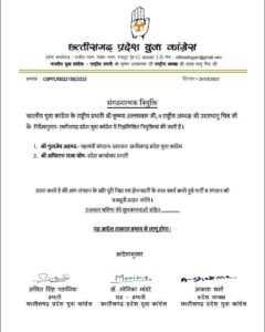छत्तीसगढ़ युवा कांग्रेस में संगठन महामंत्री की नई नियुक्ति