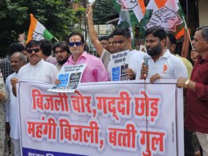 लाखेनगर बिजली ऑफिस में कांग्रेस का जोरदार प्रदर्शन, ‘बिजली चोर गद्दी छोड़’ नारे से गूंजा परिसर