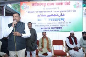 डाॅ.सलीम राज ने कहा कि वंदे मातरम केवल एक गीत नहीं बल्कि देश के मान, सम्मान, अभिमान का प्रतीक है देश की आजादी में सभी समुदाय में जोश उत्पन्न करने वाला राष्ट्रीय गीत है, वंदे मातरम भारत की आत्मा, आत्म निर्भर भारत स्वदेशी संकल्प का प्रतीक है। कार्यक्रम की अध्यक्षता शहर काजी मौलाना मुफ्ती आरिफ अली फारूकी ने की। राष्ट्रीय गीत वंदे मातरम का गायन श्रीमति रेहाना खान ने किया। कार्यक्रम में प्रमुख रूप से समाज प्रमुख हाजी अब्दुल फहीम, मखमूर इकबाल खान, युनूस कुरैशी, मौलाना आबाद फारूकी, छ.ग.राज्य वक्फ बोर्ड की मुख्य कार्यपालन