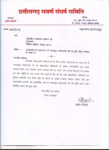 दोषी प्रशासनिक अधिकारी एवं दोषी पुलिस कर्मचारियों को तत्काल बर्खास्त करने की मांग को लेकर महामहिम राष्ट्रपति एवं महामहिम राज्यपाल को पत्र सोपा