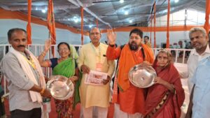 आदि शक्ति _ जगत जननी _गौ माता जी को भोजन कराने हेतु प्रत्येक घरों पर स्टील का एक _ एक बड़ा थाली जिसमें गौ माता जी को भोजन करते हुये बन सके_उस साइज का पात्र का भेट उपस्थित भक्तों को किया गया