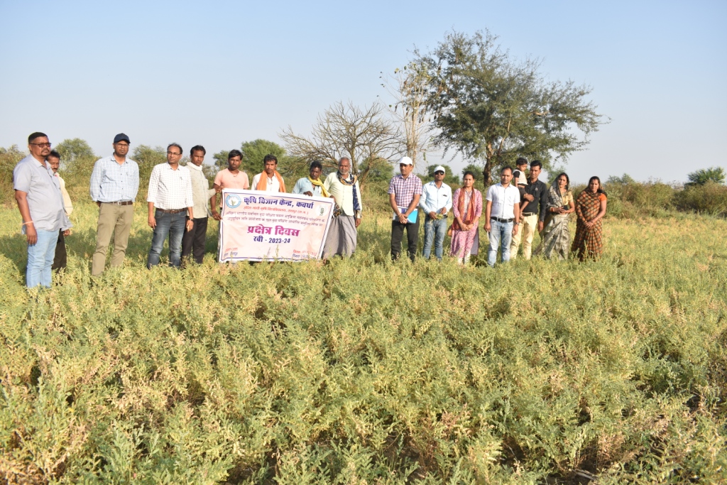 आरवीजी 202 का प्रदर्शन किया गया। प्रसल प्रर्दशन का उदे्दश्य जिले में दलहन फसल के रकबे एवं पैदावार को बढ़ावा देना है। प्रक्षेत्र दिवस मेंं चना उत्पादन तकनिकी जैसे उन्नत किस्म के बीज एवं सम्पूर्ण फसल सुरक्षा की जानकारी किसानो को दी गई। कार्यक्रम के दौरान कबीरधाम जिलें के प्रमुख फसलें धान, सोयाबीन, गन्ना एवं चना उत्पादन तकनीकी के बारे में किसानों को अवगत कराया गया।