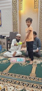 रोज़ाना जो बच्चे तरावीह की नमाज़ पढ़ने आ रहे थे उनको इनामात (गिफ्ट) देकर उनकी हौसला अफजाई की गई।