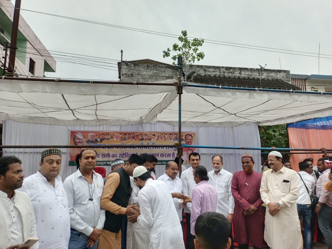 मुख्य अतिथि के रूप उत्तर विधानसभा के विधायक पुरंदर मिश्र जी, प्रदेश महामंत्री संजय श्रीवास्तव, जिला अध्यक्ष जयंती पटेल,पूर्व जिला अध्यक्ष अशोक पांडे, पार्षद मृत्युंजय दुबे, प्रदेश कार्यसमिति सदस्य मिर्जा एजाज बेग,शिव भोई, मोर्चे के प्रदेश महामंत्री मखमूर खान, मोर्चे के जिला उपाधायक्ष जमील कुरैशी, इजराइल खान, फिरोज मेमन ,वकील भारती, युनुस भाई, मिर्ज़ा मकबूल बेग कासम भाई सहित बड़ी संख्य में लोग शामिल हुए और ईद की मुबारकबाद दी। इस के बाद बूथ अध्यक्ष उस्मान खान के निवास में सभी ने पहुंच कर सेवाई खाई।