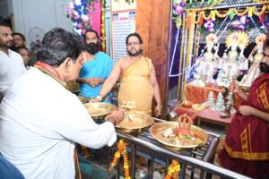 जहाँ मंदिर के प्रमुख पुजारी अखिलेश शुक्ला ने मंत्रोउच्चार के साथ पूजन व आरती करवाया। विजय शर्मा ने मंदिर की परिक्रमा कर जिला वासियों के सुख समृद्धि की कामना की।