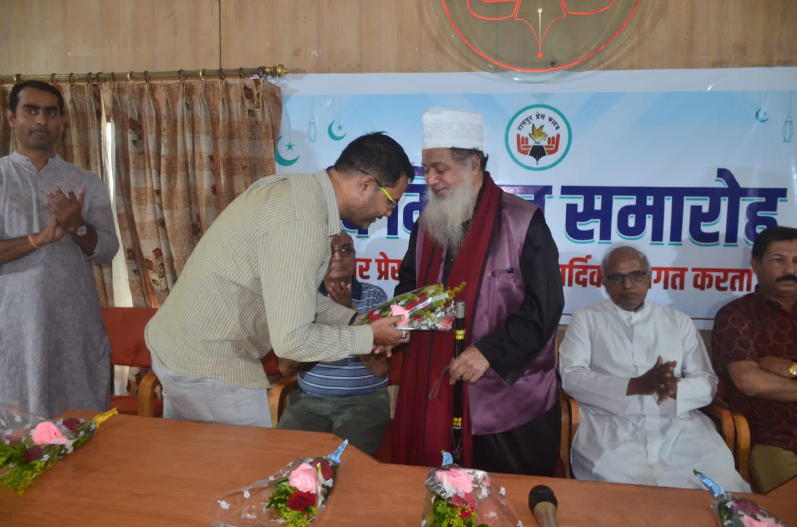 रायपुर, सियासत दर्पण न्यूज, रायपुर प्रेस क्लब की जानिब से ईद मिलन समारोह का प्रोग्राम रखा गया जिस में सभी मजहब के रहनुमा हाजिर हुए,प्रेस क्लब अध्यक्ष प्रफुल ठाकुर ने सभी मेहमानों का स्वागत किया,इस अवसर पर प्रेस क्लब के सभी पदाधिकारी, प्रिंट मीडिया, इलेक्ट्रॉनिक मीडिया के पत्रकार साथी, असगर खान,दैनिक भास्कर, फैसल रिज़वी मौजूद थे और काजी-ए-शहर हजरत मौलाना मुफ्ती मोहम्मद अली फारूकी साहब मुख्य अतिथि की हैसियत से शरीक हुए..